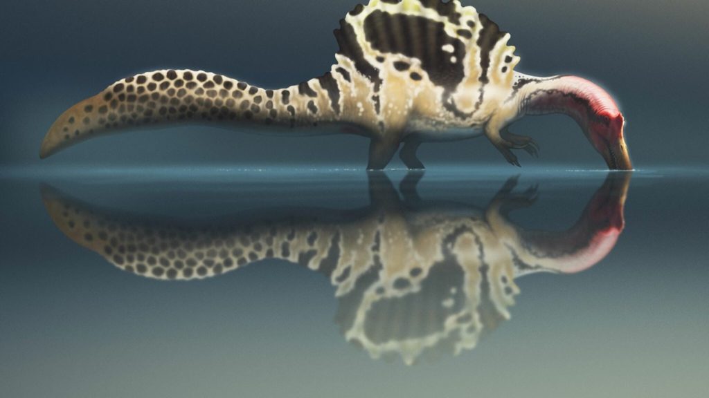 Testes em um laboratório de biorrobótica para o estudo de peixes em Harvard mostraram que o contorno da cauda do Spinosaurus era mais eficiente para gerar impulso na água do que as caudas de outros dinossauros relacionados, embora fosse menos eficiente do que as caudas dos crocodilos modernos. Somando-se ao vínculo aquático, um estudo separado publicado em setembro constatou uma quantidade desproporcional de dentes de Spinosaurus em sedimentos fluviais antigos do Marrocos.